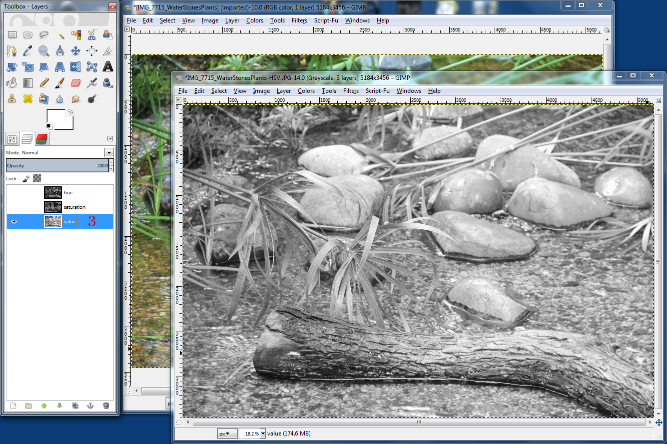 like a grayscale version of the image and is identified by the word “value” in the Layers list, and copy it (CTRL+C) [3].